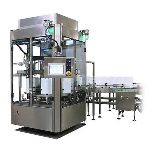 ■ 灌裝結(jié)束后,灌裝頭自動(dòng)提升至桶外,滴漏盤承接至灌裝頭底部,灌裝完成后,出艙門打開,灌裝完成的滿桶輸送出灌裝倉(cāng)后,出艙門關(guān)閉。至此一個(gè)循環(huán)完成。